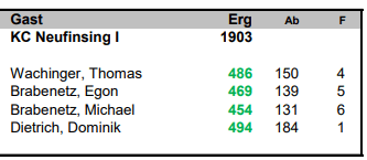 Letztes Jahr sind sie erst wieder zusammen mit der zweiten Mannschaft aufgestiegen in die BOL und während die Zweitbesetzung lange gegen den Wiederabstieg gespielt hat, kegelte sich die erste Neufinsinger Mannschaft schnell mit in die Spitze der Tabelle. Zur Saisonhalbzeit lagen die Neufinsinger jedoch lediglich auf Platz 5, was aber bei der knappen Saison mit einigen Top-Mannschaften dieses Jahr nichts zu sagen hatte. Wie in der Vorrunde, wurden auch in der Rückrunde genau 12 Punkte geholt und je 3 Spiele aus der Hand gegeben. Aber die Neufinsinger haben gegen die richtigen Gegner gesiegt und sicherten sich damit die besseren direkten Vergleiche gegen alle Mitstreiter um den Titel.
